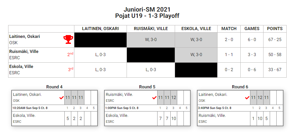 Emilia Soini hävisi oman ottelunsa 2-3. Tarkempi analyysi myöhemmin !